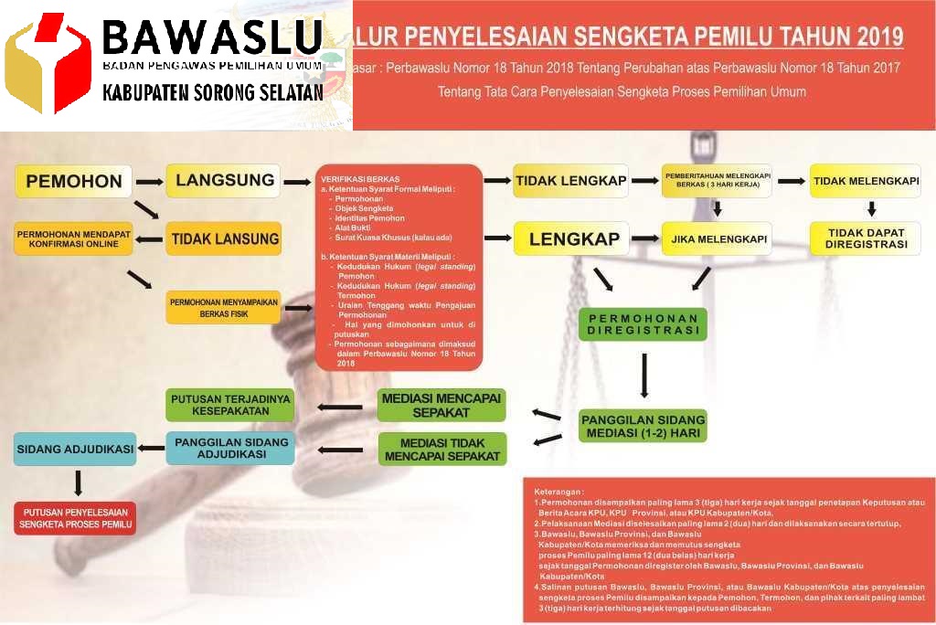ALUR PENYELESAIAN SENGKETA PROSES PEMILU SERENTAK TAHUN 2019 BERDASARKAN UU NOMOR 7 TAHUN 2017 TENTANG PEMILIHAN UMUM humas | Jumat, Agustus 14, 2020 - 19:50 \n\n" Share Berita Terkini humas Senin, November 10, 2025 - 07:51 Momentum Hari Pahlawan, Bawaslu Sorong Selatan Tanamkan Nilai Kepahlawanan dalam Tugas Sehari-hari humas Minggu, November 17, 2024 - 14:54 Bawaslu Pastikan Sortir Sesuai Prosedur humas Jumat, November 15, 2024 - 09:26 BAWASLU SORONG SELATAN GOES TO SCHOOL Lihat Lainnya